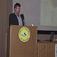 The first conference on the use of GIS and Remote Sensing in Armenia, which took place at the American University of Armenia on December 16, was a big success. Geographic Information Systems (GIS) are highly sophisticated computer programs which are used to analyze and store spatial data, produce maps, and make prognoses. They are being applied in a wide range of sectors and are state-of-the-art technology used worldwide. The conference was jointly organized by the Acopian Center for the Environment and Geocom Ltc. It attracted more than 40 participants from private GIS companies, state agencies, universities, major NGOs and international organizations. The presentations covered a wide range of important subjects, such as the use of GIS in the field of forest management, disaster management, water and waste water management, and geochemical pollution monitoring. It was the first time that GIS stakeholders from Armenia met over such an event and it was a great opportunity for improved cooperation among institutions working in the same field. All participants agreed that the conference shall be repeated in the following years.